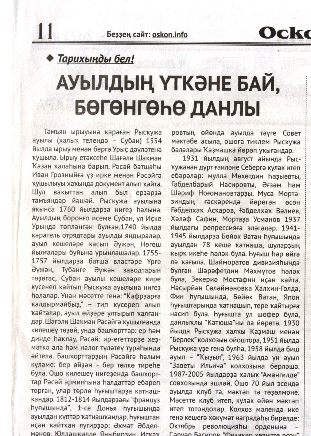 Ауылдың үткәне бай, бөгөнгөһө данлы